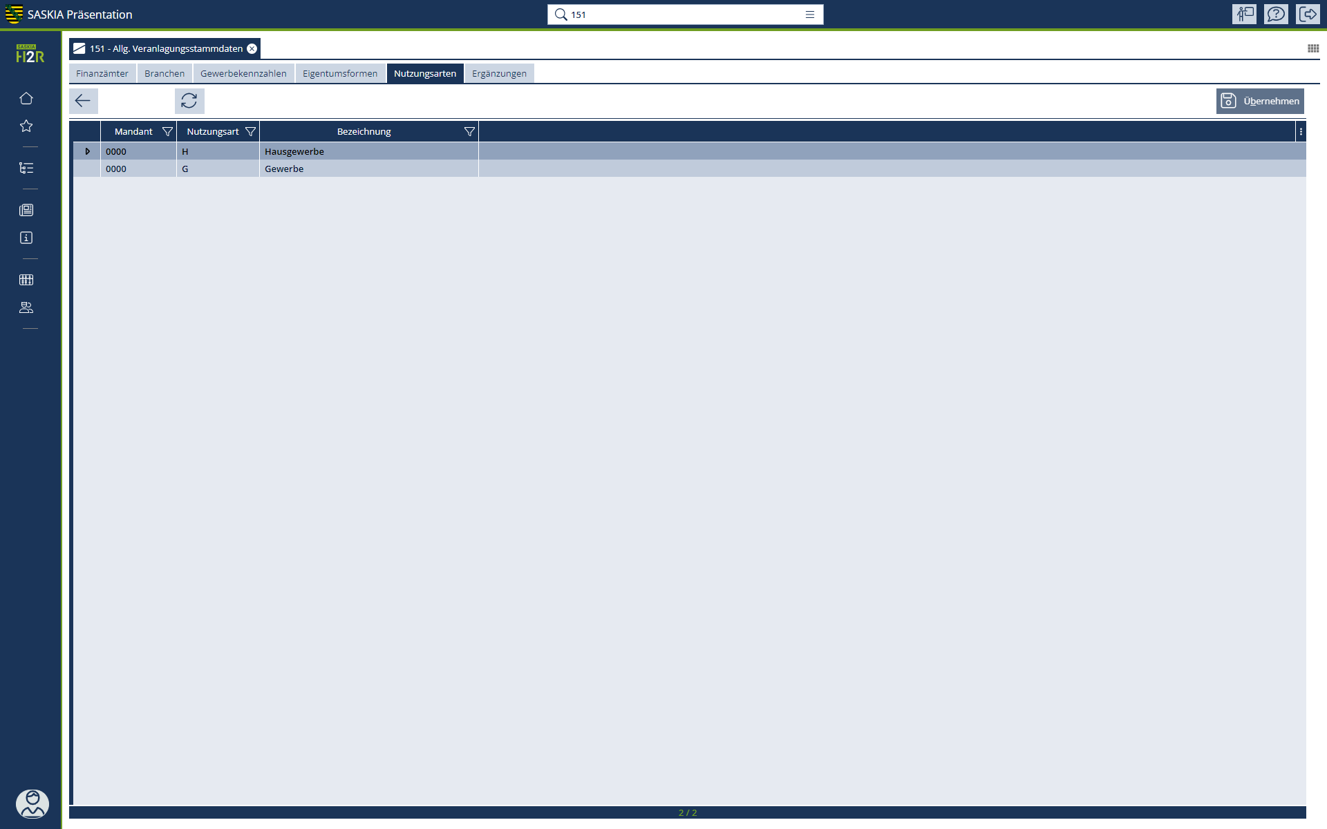 In diesem Menüpunkt werden die Nutzungsarten verwaltet, die u.a. für statistische Zwecke bei der Anlage von Gewerbesteuerobjekten angegeben werden.
