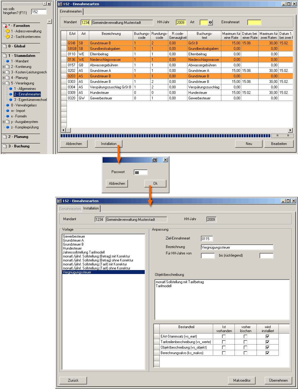 | Navigator | Stammdaten - Veranlagung - Einnahmearten |