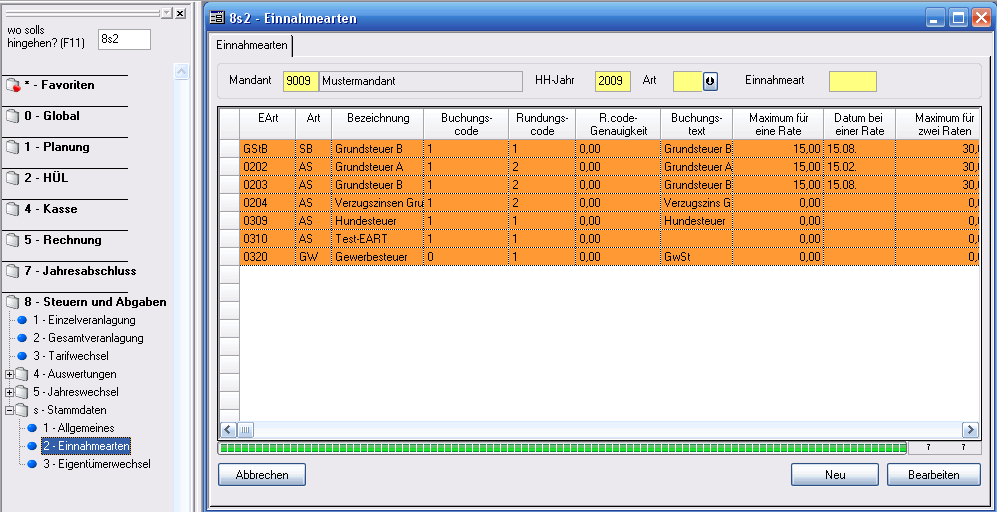 | Navigator | Steuern und Abgaben - Stammdaten - Einnahmearten |