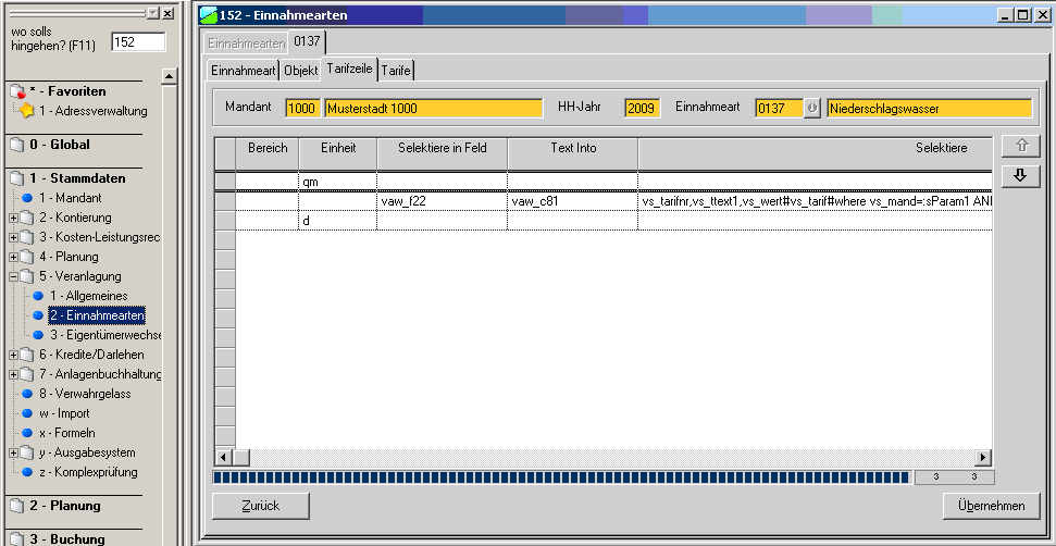 | Navigator | Stammdaten - Veranlagung - Einnahmearten | |
