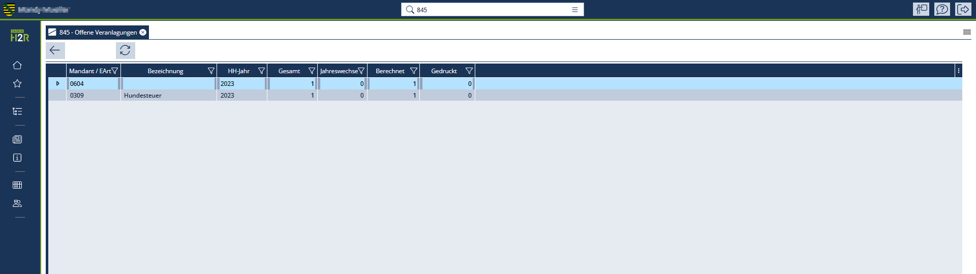 Beim Aufruf des Programmes werden zunächst alle begonnenen bzw. unvollständigen Veranlagungsfälle in einer Übersicht mandantenbezogen angezeigt. Damit wird abgesichert, dass offene Veranlagungen weiter bearbeitet, alle Bescheide gedruckt und verbucht werden. Bei einer größeren Anzahl offener Veranlagungsfälle oder längerer Bearbeitungszeit durch das Programm, wird dies durch einen Laufzeitbalken, der den anteiligen Bearbeitungsstand anzeigt, kenntlich gemacht. Der Bearbeiter hat in diesem Fall die Möglichkeit, durch Klicken in den Laufzeitbalken den gestarteten Vorgang jederzeit abzubrechen