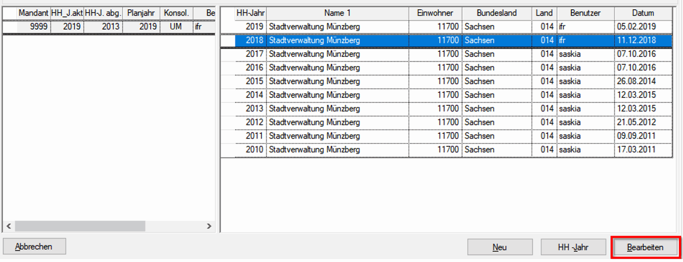 Auswahl des Haushaltsjahres aus der Liste durch markieren der Zeile „Bearbeiten“ - Reiter „Schalter“ auswählen.