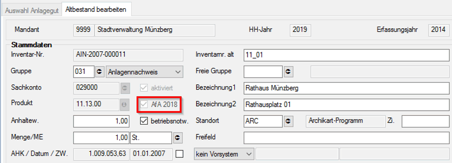 Die Voraussetzung für den Switch eines „Altanlagegutes“ zum „Neuanlagegut“ ist, dass die Abschreibung des betroffenen „Altanlagegutes“ noch nicht in der Finanzbuchhaltung verbucht wurde, da der Switch keine automatische Umbuchung bereits verbuchter AfA innerhalb der Finanzbuchhaltung auslöst. Wurde die Abschreibung für das zu bearbeitende Anlagegut bereits innerhalb der Finanzbuchhaltung gebucht, so ist diese im entsprechenden Haushaltsjahr komplett zu stornieren um Differenzen zu vermeiden.