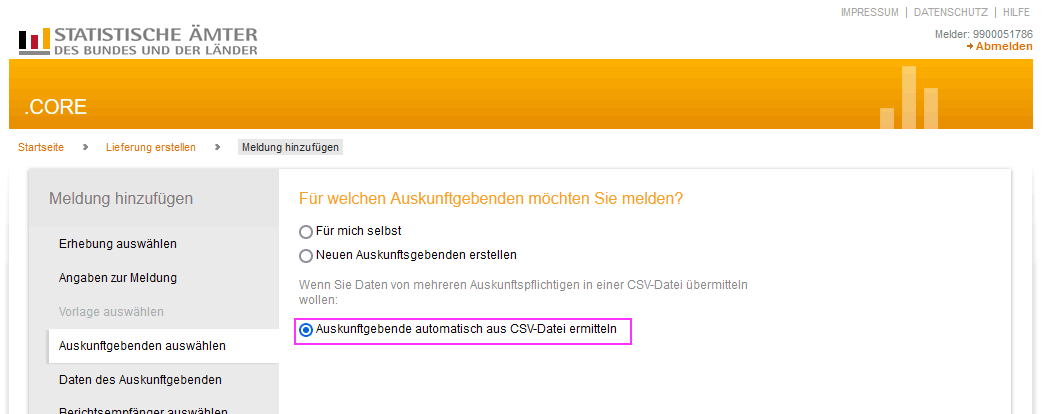 Wie gewohnt die einzelnen Schritte durchgehen und im Fenster "Für welchen Auskunftgebenden möchten Sie melden?" den Haken wie im Bild setzen: