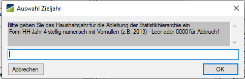 Aktualisierung der Statistik und Hierarchien im über den Schattenmandant in der Systemverwaltung bzw. über das Menü 124.Bei den Abfragen sind einmal der Mandant und Haushaltsjahr für welches die Jahresstatistik erstellt wird einzugeben. Haben Sie mehrere Mandanten im , dann muss der Punkt 6 für jeden Mandant durchgeführt werden. Dazu den Haken wieder auf "Ausführen" setzen.