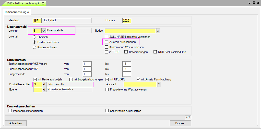 Listennummer:6 - Finanzstatistik Produkthierarchie: S - Jahresstatistik Ausweis Nullpositionen: abhaken