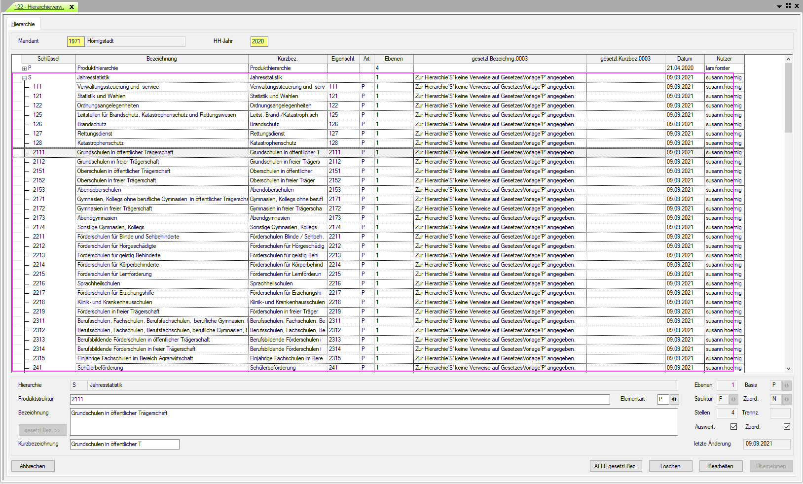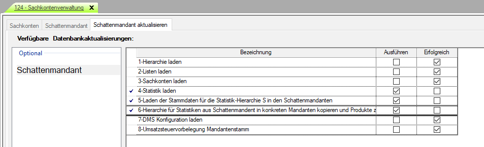 Prüfung, ob eine S-Hierarchie im entsprechenden HHJ vorhanden ist. Ist dies nicht der Fall, ist eine Aktualisierung wie oben beschrieben zwingend über den Schattenmandant vorzunehmen.
