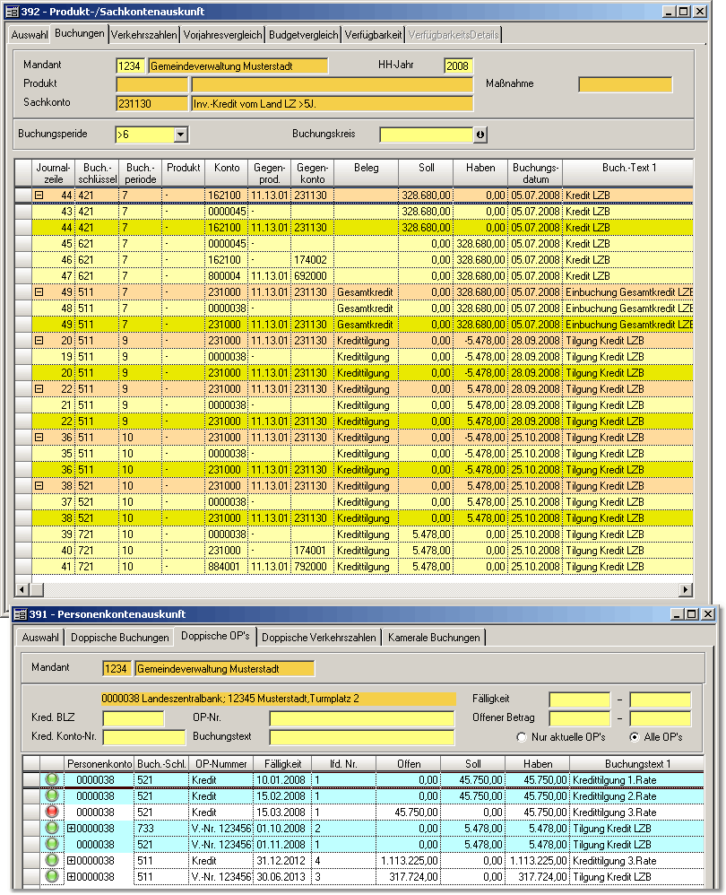 Die Verbuchung der Kredittilgung erfolgt immer zunächst durch eine Stornierung des angelegten Gesamt-OP's in Höhe der Tilgungsrate. Dazu ist im Rahmen einer kreditorischen Sollstellung das Personenkonto und danach der betreffende Gesamt-OP auszuwählen.