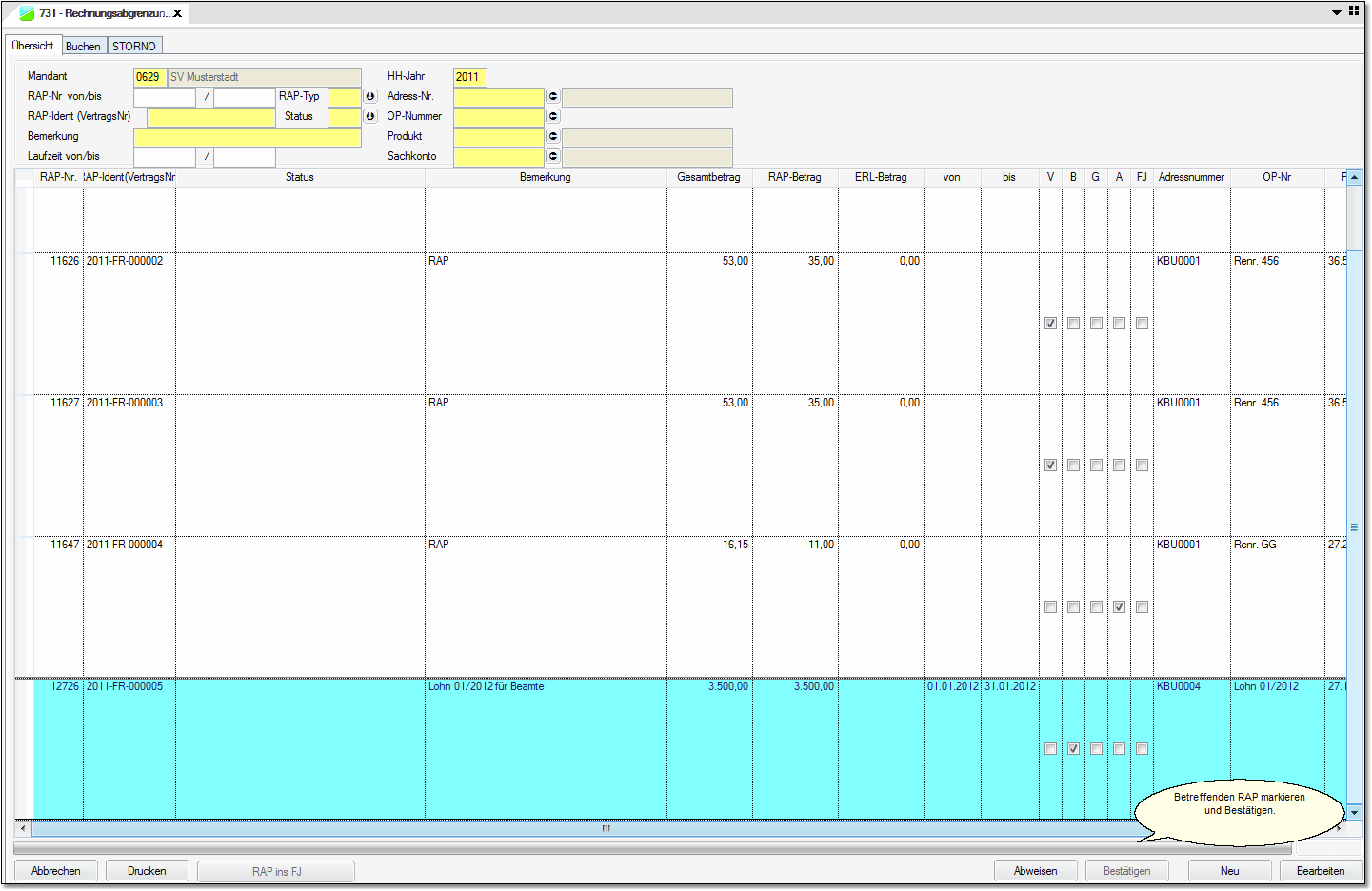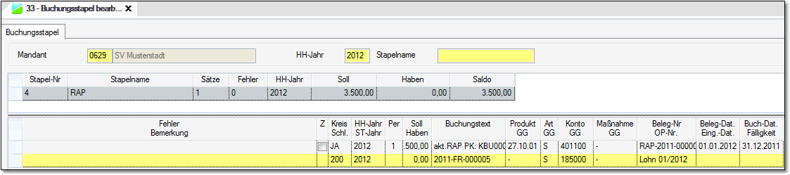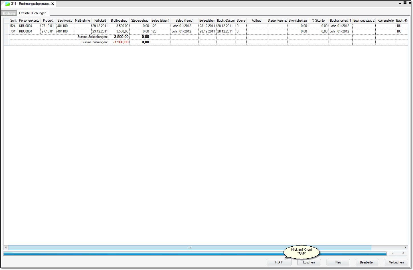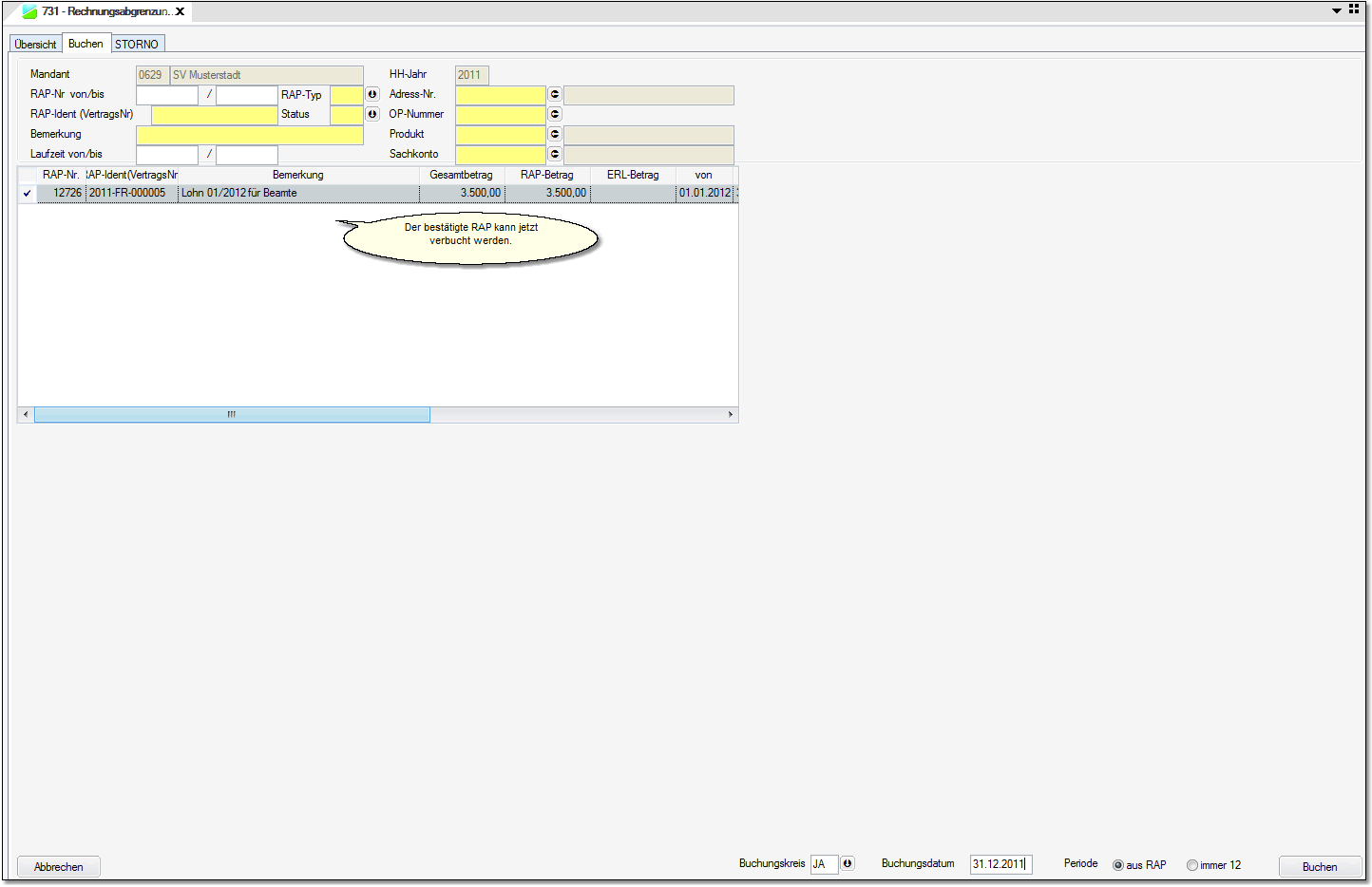 Den aktive RAP in 2011 bestätigen und verbuchen (ACHTUNG auch Buchungsstapel verbuchen.)