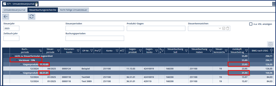- Somit ist eine Übersicht pro Steuerfall/Produkt für die umzubuchenden Beträge gegeben