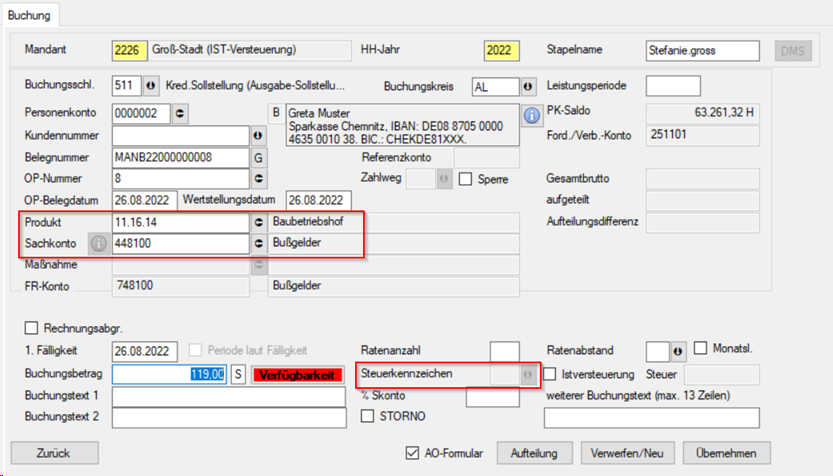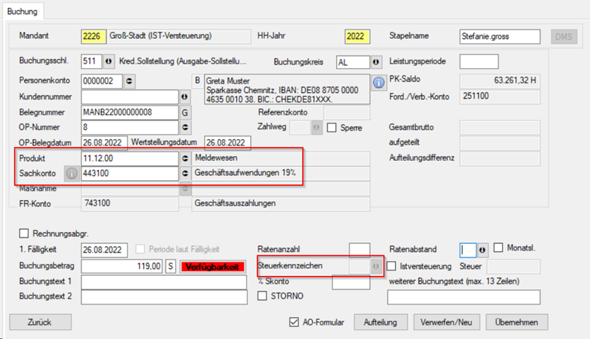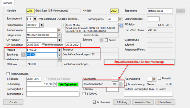 - nur das Steuerkennzeichen, was am Sachkonto angegeben ist, darf verwendet werden