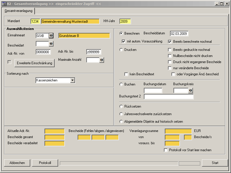 b) Festsetzung mit Hilfe der Gesamtveranlagung Die Festsetzung der Grundsteuer kann auch mit Hilfe der Gesamtveranlagung erfolgen, um die Festsetzung für alle Kassenzeichen durchzuführen.