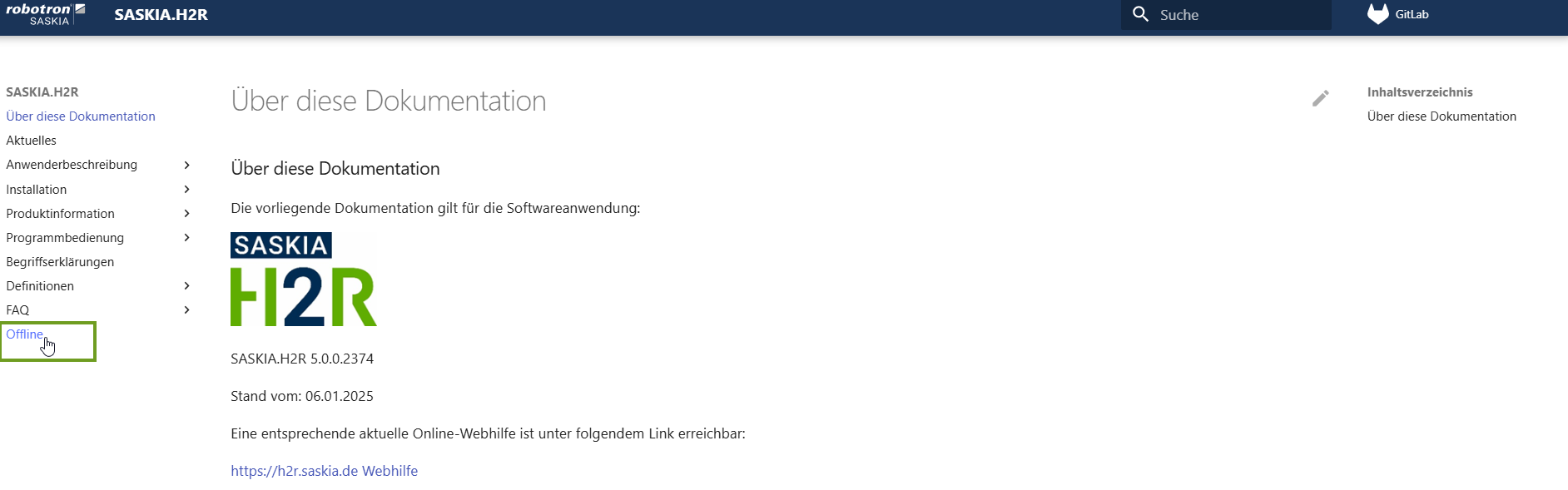 Im Menübaum der online Hilfe auf 'Offline' klicken