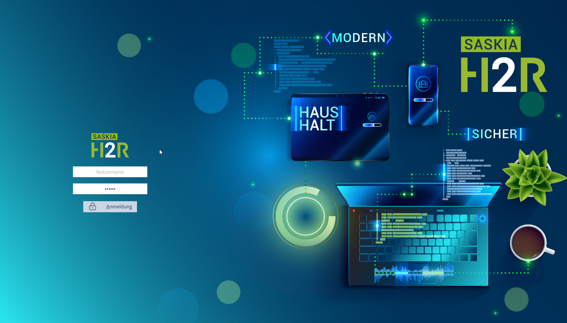 Nach Aufruf des Links, öffnet sich der Anmeldungsdialog des SASKIA.H2R. Zunächst muss hier der gewünschte Mandant gewählt werden. Kunden die mit mehreren Mandanten arbeiten, müssen pro Mandant eine einzelne Anmeldung tätigen.