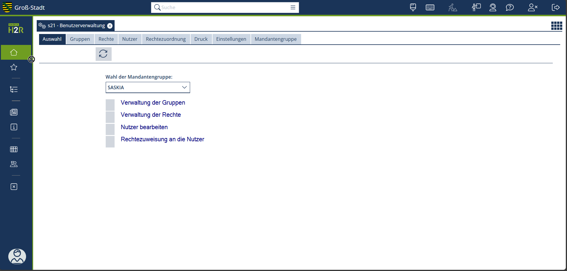 | Wahl der Mandantengruppe | Auswahl der Mandantengruppe. |