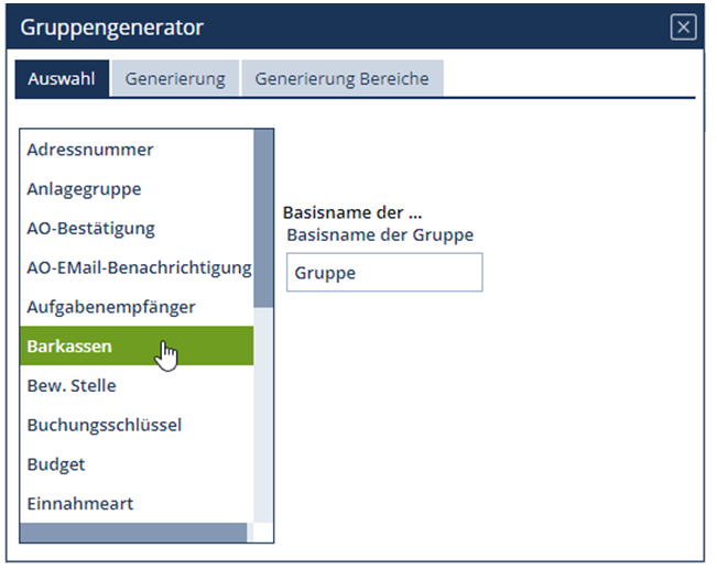 | Generator | Der Gruppengenerator bietet die Möglichkeit mehrere Gruppen im Kontext der gleichen Berechtigungsstruktur anzulegen. |